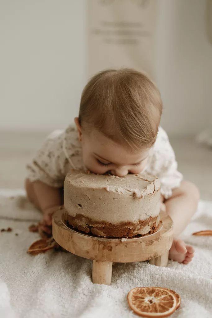 ¡Por supuesto! Empezamos siempre con unos 10 minutos de fotos familiares, luego continuamos con imágenes del bebé solo, y por último llega el momento más divertido: las fotos con la tarta.