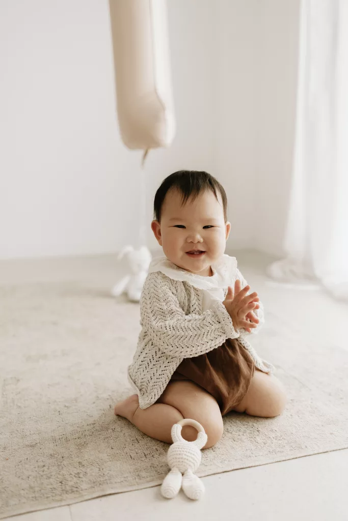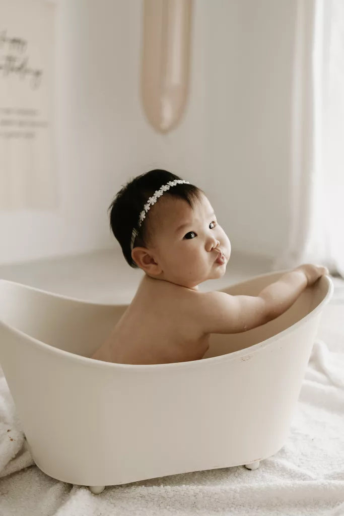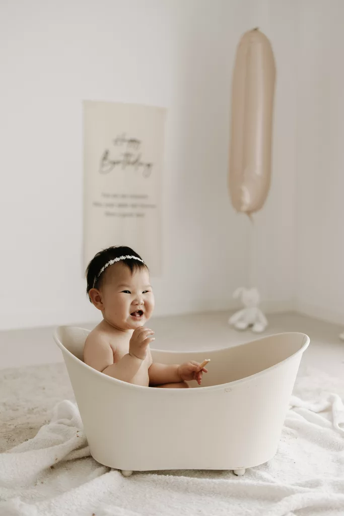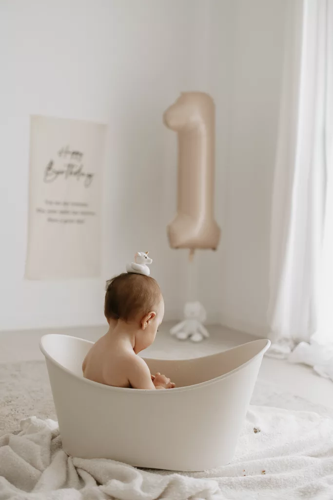 Las sesiones se realizan en mi estudio, con luz natural y todo preparado para que tu peque se sienta como en casa.